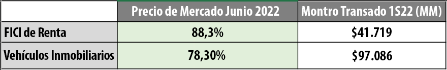 Aproximadamente el 22,09% del total del monto transado en el mercado secundario de los vehículos inmobiliarios colombianos pertenecen al FICI de Renta.