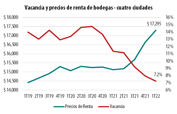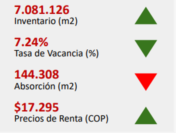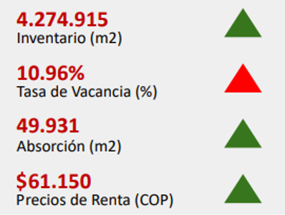 Lo anterior, acompañado de una alta inflación ha incrementado los precios y costos de materiales de construcción, haciendo difícil la producción de nuevo inventario de oficinas, bodegas y centros comerciales. Teniendo en cuenta esto, es de esperarse una absorción continua de los espacios disponibles, permitiendo una compresión de las tasas de vacancia para los diferentes mercados inmobiliarios.