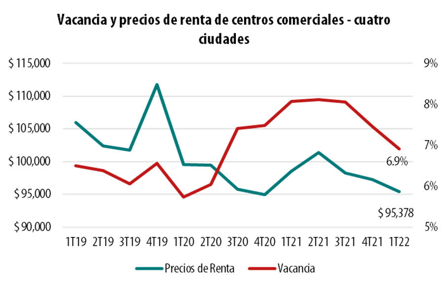 en los activos se dio en los centros comerciales y en las oficinas. Sin embargo, en el inicio de 2022 el comercio de propiedad única a nivel nacional
