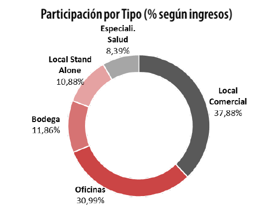 comerciales con el 37,88% de los ingresos, seguido de las oficinas que se ubican en 30,99%, en tercer