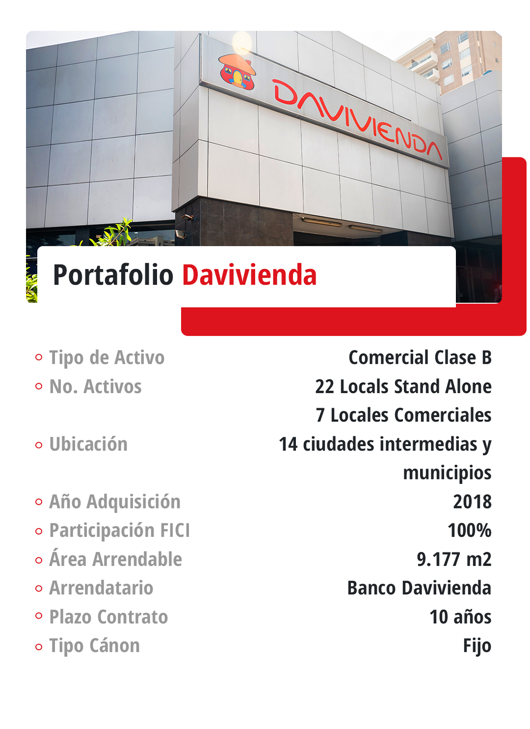 Para el equipo de gestión del Fondo de Inversión Colectiva Inmobiliario de Renta Davivienda Corredores es gratificante presentar un desempeño favorable consolidado y con buenas proyecciones hacia adelante.