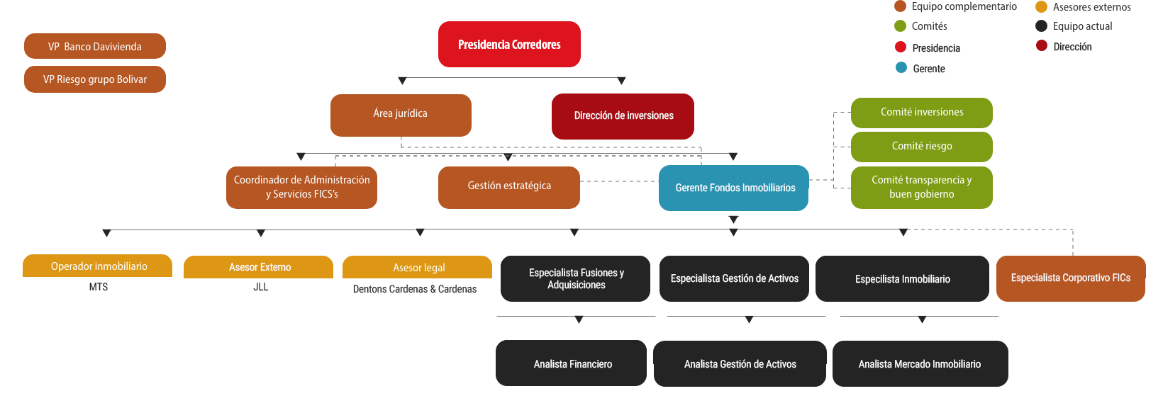 El FICI de Renta, además de estar compuesto por un equipo gestor principal, tiene la ventaja de estar respaldado por diversas áreas de Corredores Davivienda que permiten su crecimiento y desempeño óptimo.